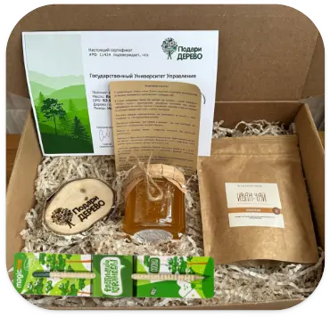 - Мы готовим именные сертификаты на деревья для ваших партнеров. На сертификате можно отразить идею дарения, например, помощь какому-то определенному проекту или озвучить вашу цель.