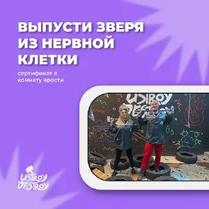 Необычный подарок с пользой для нервной системы и для хорошего настроения. Точно удивите! Здесь можно вдвоем крушить технику, мебель, посуду и элементы стекла. В тариф «Бей посуду» входит 30 элементов - идеальное наполнение для избавления от негатива и получения массы положительных эмоций!